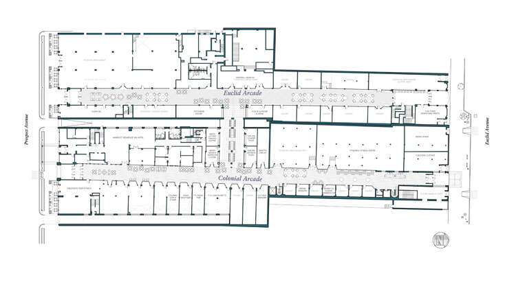 The Arcades are comprised of two unique architectural landmarks, the Colonial Arcade which was built in 1898 and the Euclid Arcade, constructed in 1911. In 2000, the two arcades were linked when a historic hotel atop the Colonial Arcade was renovated and reopened.