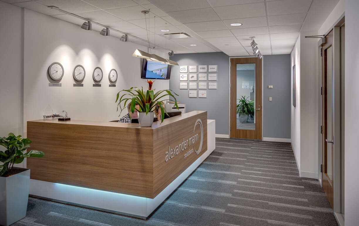Since establishing the Center in an existing office space a few years ago, Alexander Mann has grown rapidly. Faced with the need to add additional space, the company determined the time was right to make adjustments that better support their staff and endow the office with their corporate personality.