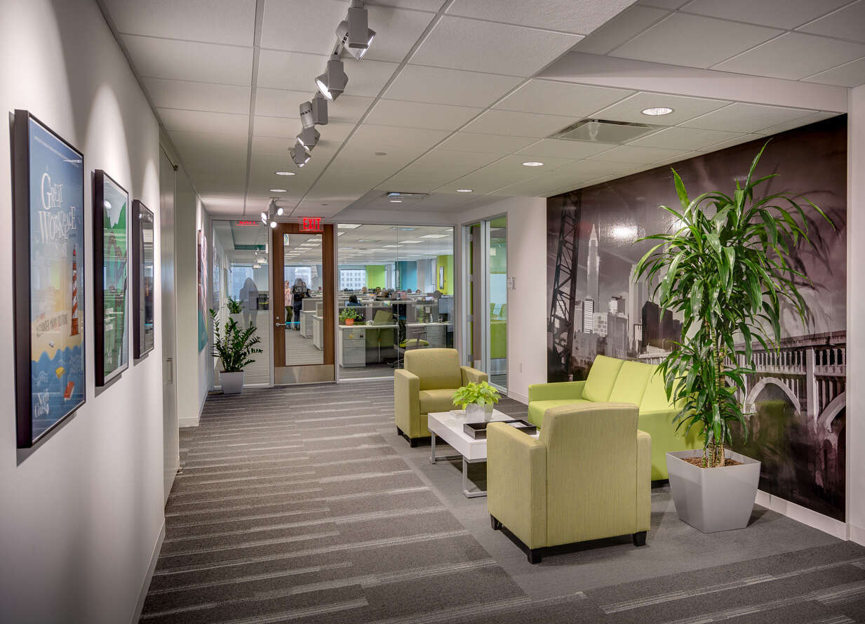 Dimit Architects worked with Alexander Mann Solutions, a London-based global provider of talent acquisition and management services, to redesign their Global Client Service Center in the Erieview Tower in Cleveland, Ohio.