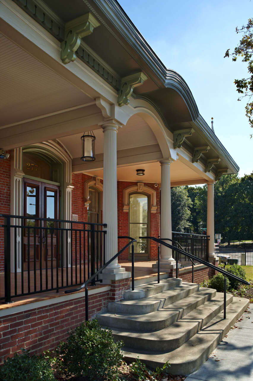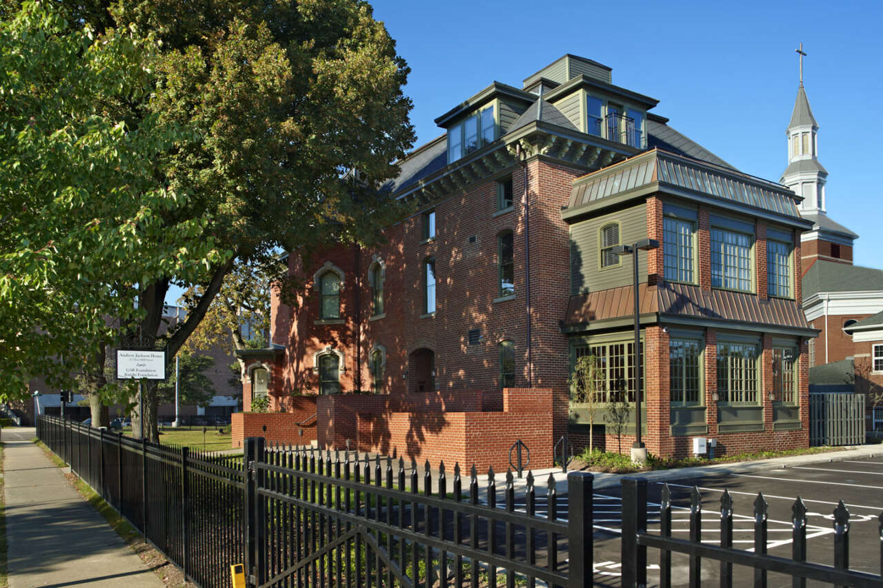 Originally constructed in 1872, this Second Empire-style brick mansion was converted in 1910 for use as an Odd Fellows Brotherhood meeting hall. The Chesler Group purchased the building in 2007 and commissioned the restoration and renovation to provide a new headquarters for the GAR Foundation. Exterior restoration included repair of the stone base and brick exterior walls, repair of windows, new paint finishes, and repairs to the front entry.