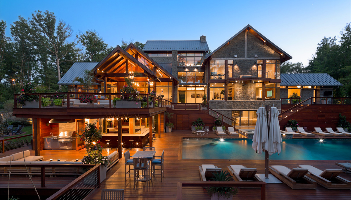 The Clients purchased the residence in early 2022 and, while in love with the classic detailing and historic qualities of the home, sought a lighter, more-current interior expression, and also hoped to establish a better connection to the private rear lawn for entertaining. As part of the overall design renovation, existing vintage walnut paneling and trim was restored, ceiling and wall plaster ornamentation was repaired and painted a fresh white tone. Existing custom Art Deco-era light sconces were restored by local artisans, while new complimentary modern pendant light fixtures were added to offset the period design features. At the refreshed living room, a series of bi-folding French doors designed as an exact match to vintage French doors were installed to completely open the room to the rear patio and pool terrace beyond.