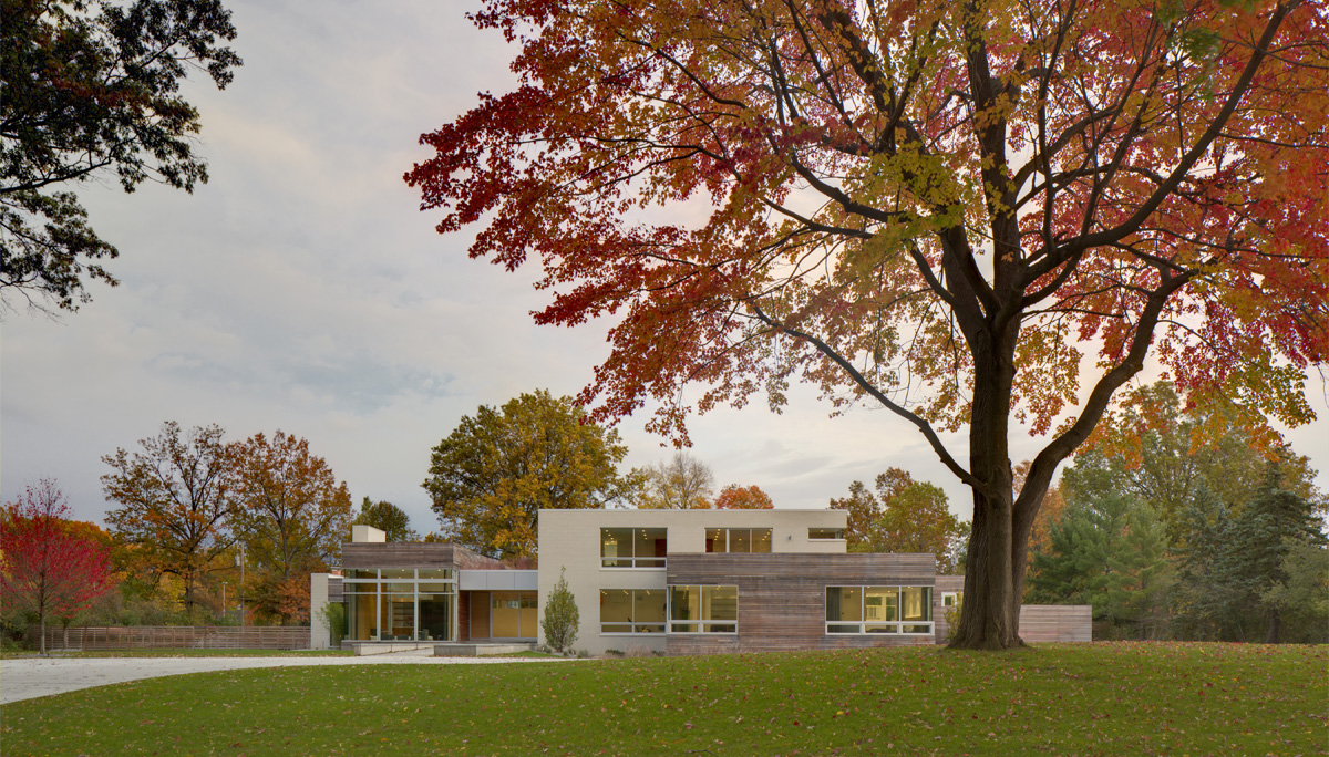 This two-story classic manor was designed by the noted Cleveland architectural firm of Meade and Hamilton, and was originally constructed in 1927. The buff brick-clad structure features corbeled brick and sandstone detailing with refined wood trim, in addition to its original terracotta tile roof.