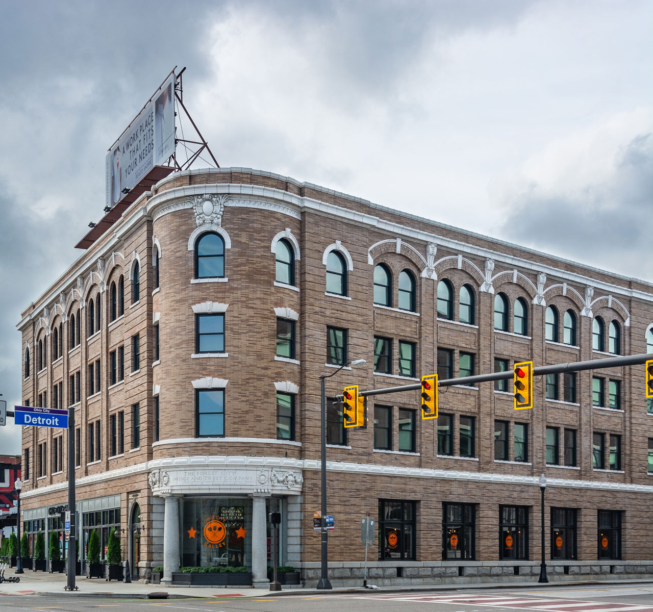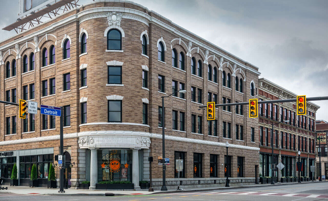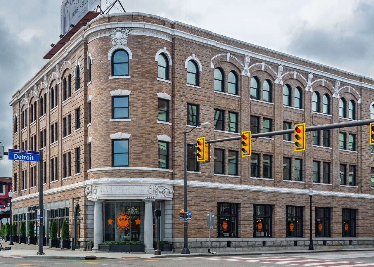The historic Forest City Savings & Trust Building (built in 1904) and Seymour Block (built in 1878) are located on the corner of West 25th St. and Detroit Avenue in Cleveland’s thriving Ohio City neighborhood.