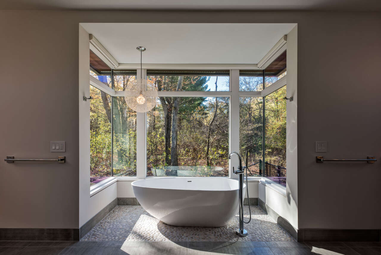 This new single-family residence was designed for a young family outside of Cleveland on a private, wooded lot in the Village of Bentleyville, Ohio.