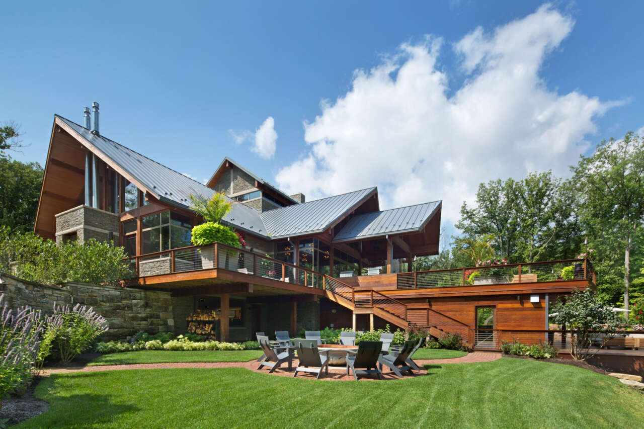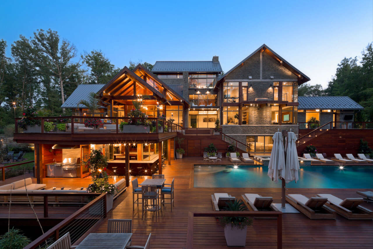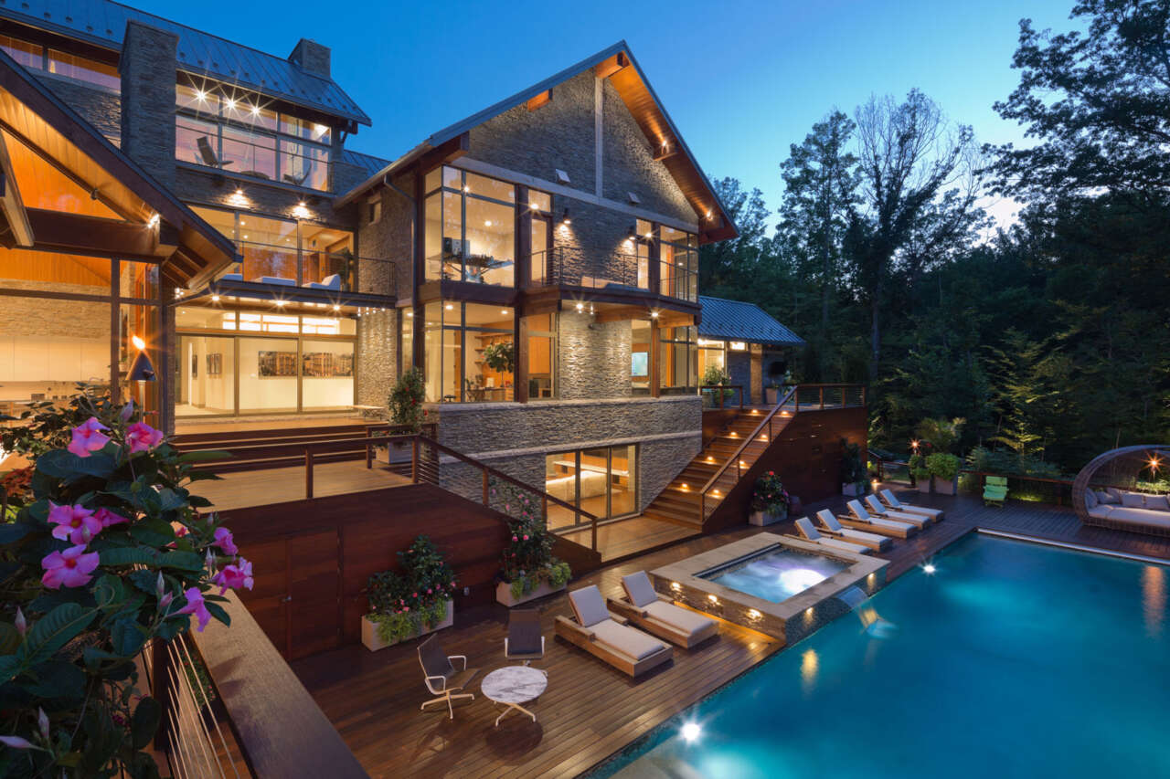8,000 s.f. of overall living area is provided, including a generous walk-out basement, chef’s kitchen, and five bedrooms with dedicated bathrooms. A treetop ‘sky lounge’ provides a private entertaining space and deck overlooking the Cuyahoga River Valley.