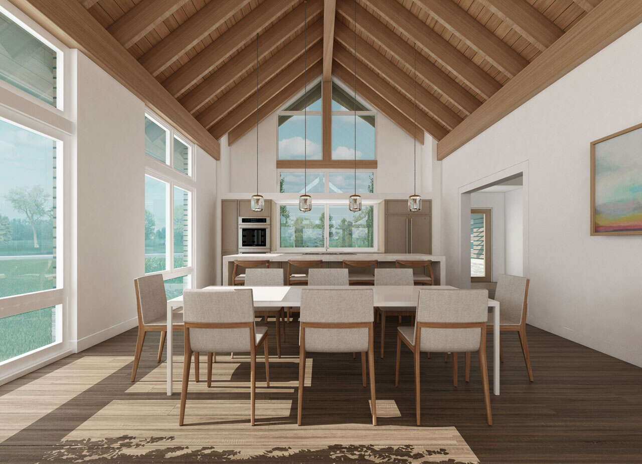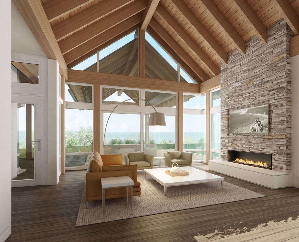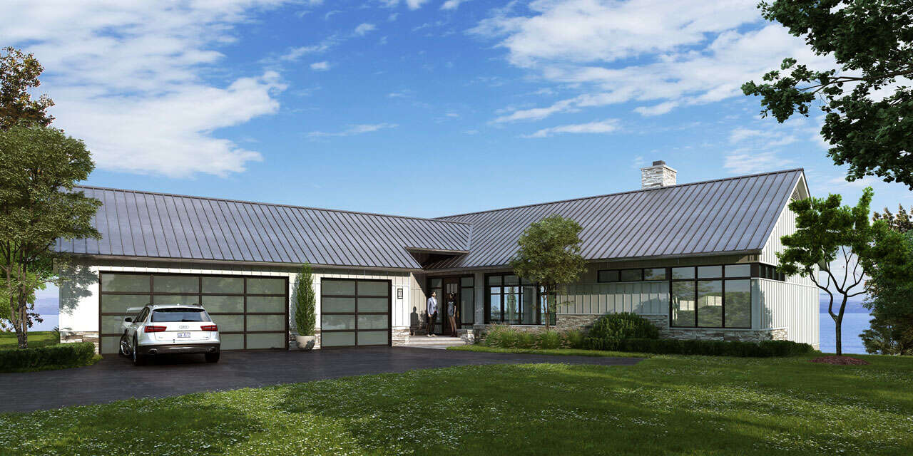 The first homes to be built on the site have comfortable, modern farmhouse styling while offering incredible views of East Bay and amenities such as a private boat slip.